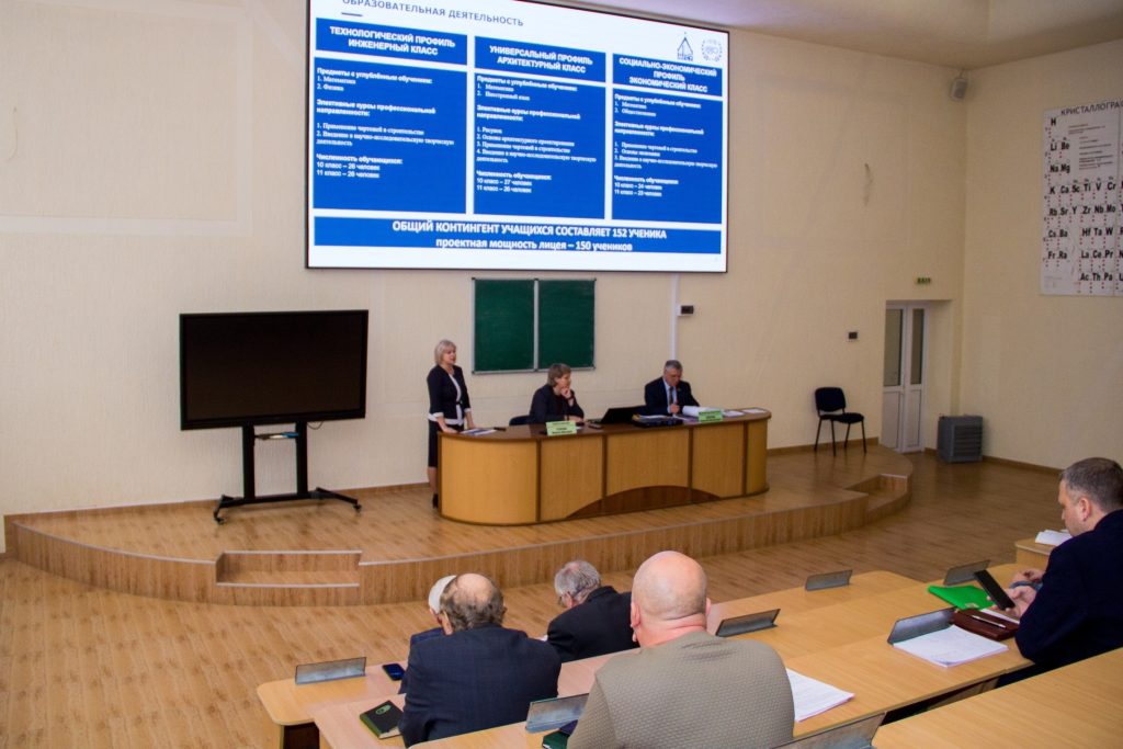 Вторым вопросом повестки дня стали результаты и перспективы работы Республиканского архитектурно-строительного лицея-интерната ДОННАСА – филиала НИУ МГСУ. В ходе своего выступления директор лицея Нина Богдановна Яковенко отметила, что лицеисты активно участвуют в мероприятиях академии и хотели бы быть ещё более вовлечёнными в этот процесс. По её словам, в этом году в РАСЛИ предполагается выпуск 76 учеников, каждый из которых может потенциально стать студентом нашего вуза, а значит, все выпускающие кафедры должны быть в этом заинтересованы.