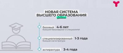 — Вместо формулы «бакалавр — магистр» вводится: базовое высшее образование сроком от четырех до шести лет — в зависимости от специальности, специализированное высшее образование продолжительностью один-три года — по сути, обновленный формат магистратуры с профессиональными, управленческими и исследовательскими треками — подчеркнула депутат.
