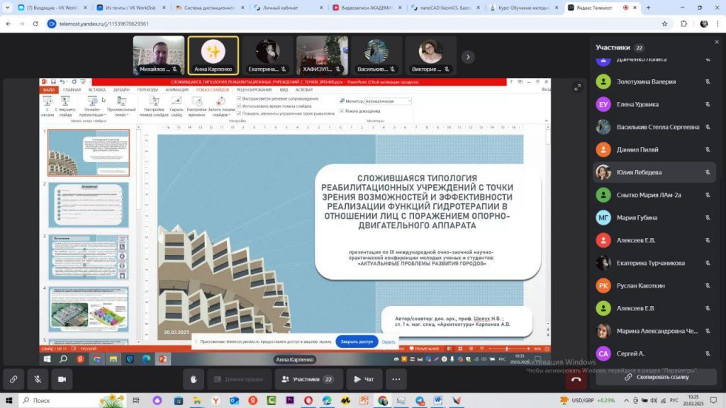С приветственным словом к участникам обратился заведующий кафедрой архитектурного проектирования и дизайна архитектурной среды ДОННАСА, кандидат архитектуры, доцент Тимур Валерьевич Радионов. Он подчеркнул важность мероприятия для Донецкой Народной Республики и страны в целом.