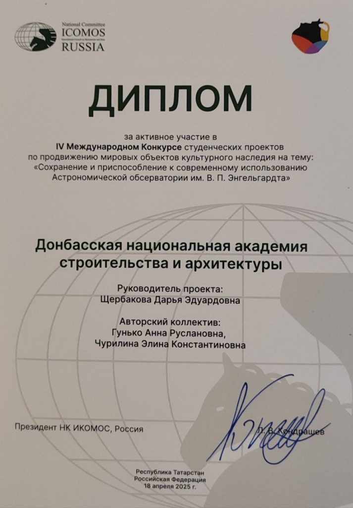 Архитекторы ДОННАСА в очередной раз достигли успеха на международном конкурсе проектов по сохранению культурного наследия.