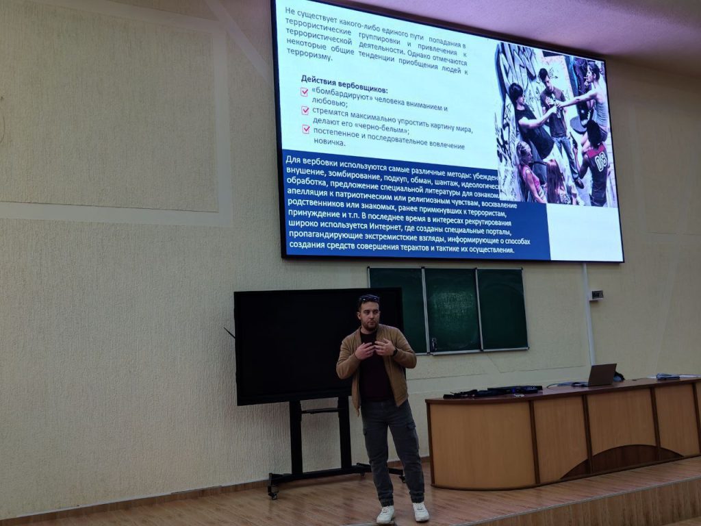 Студенты получили необходимую теоретическую информацию о природе радикальных идей, формах проявления угроз общественной безопасности, а также познакомились с алгоритмами действий в чрезвычайных ситуациях.