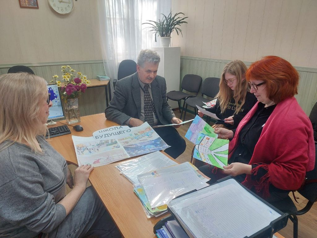 Доктор архитектуры, заведующий кафедрой ГРРАН Евгений Алексеевич Гайворонский, старший преподаватель кафедры ГРРАН Оксана Витальевна Чукова, ассистент кафедр ЛА и ГРРАН Елена Владимировна Шамардина встретились с директором школы Светланой Юрьевной Ваколюк и обсудили результаты предварительного анкетирования, в котором приняли участие учащиеся, родители, педагоги и руководство школы.