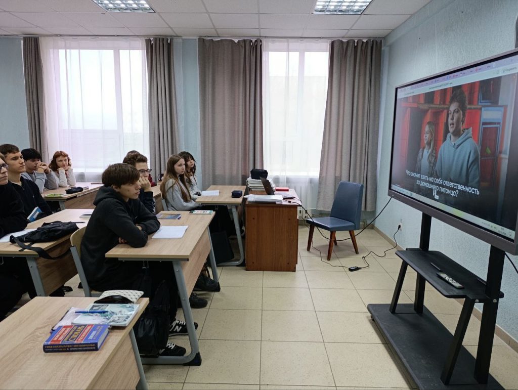 Занятие провели с целью актуализации у лицеистов представлений о роли и значении домашних животных в жизни человека; развития сознательного и ответственного отношения к братьям нашим меньшим, экологической культуры, мотивации к исполнению домашних и социальных обязанностей по содержанию питомца; формирования представлений о мерах государственного регулирования содержания животных и защиты дикой природы.