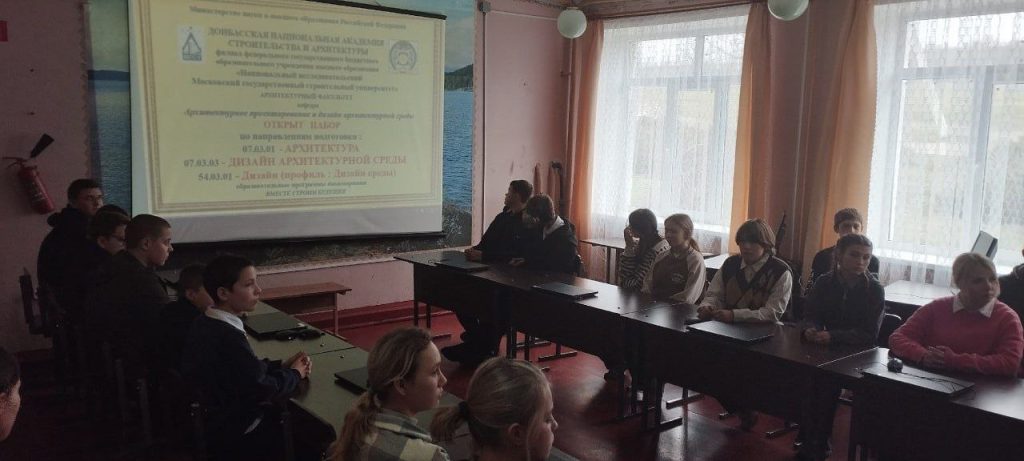 В рамках проведения профориентационной работы для учащихся 28 ноября и 5 декабря состоялись встречи сотрудников кафедры «Архитектурное проектирование и дизайн архитектурной среды» ДОННАСА – филиала НИУ МГСУ с учениками 8-9 классов макеевских школ.