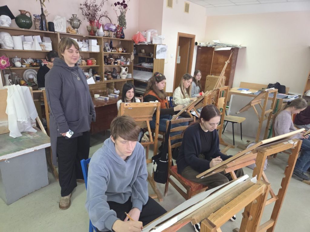 В субботу, 31 января, для студентов Донбасской национальной академии строительства и архитектуры (ДОННАСА – филиала НИУ МГСУ) и других обучающихся студии творческой подготовки им. Т. Н. Вышинской было проведено особенное занятие под руководством старшего преподавателя кафедры ГРРАН Оксаны Витальевны Чуковой. Оно было необычным потому, что его посетила настоящий художник-реставратор Московского Художественного академического театра им. Максима Горького (МХАТ имени Горького) Дарья Сергеевна Щербакова.