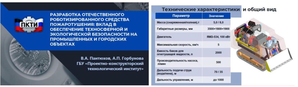 Помимо вышеназванных, у участников конференции вызвал интерес доклад на тему: «Разработка отечественного роботизированного средства пожаротушения: вклад в обеспечение техносферной и экологической безопасности на промышленных и городских объектах». В данной работе рассмотрен вклад в обеспечение техносферной и экологической безопасности за счет создания дистанционно управляемых средств пожаротушения, способных работать в опасных зонах без участия человека