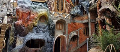 Сказочный отель «Сумасшедший дом» – один из самых популярных туристических аттракционов в Далате, Вьетнам. Все здесь сделано «безумно» – и внутри, и снаружи. Лабиринты узких переходов, хаотичные коридоры странных форм и размеров, причудливые грибы, вырастающие на крышах, переплетение живой растительности и каменных элементов архитектуры. Особенное восхищение вызывает Crazy House у детей, которые словно погружаются в мультфильм или на страницы необычной книги.