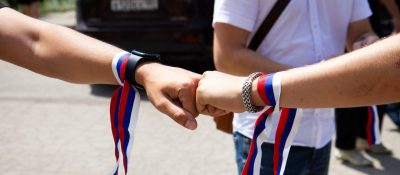Студенты-активисты поздравили всех обучающихся и преподавателей с наступающим праздником и вручили в качестве небольшого подарка ленты триколор.