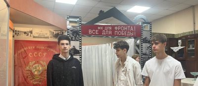 Обучающиеся внимательно рассматривали экспозиции выставки, посвящённой Великой Отечественной войне, объединённую, пожалуй, самым известным лозунгом Донбасского трудового народа, – «Всё для фронта! Всё для победы!»