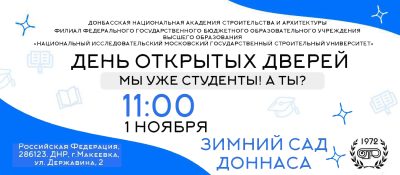Уже завтра в 11:00 в ДОННАСА – филиале НИУ МГСУ состоится День открытых дверей для абитуриентов.