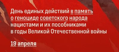 19 апреля – День единых действий в память о геноциде советского народа нацистами и их пособниками в годы Великой Отечественной войны. Эта памятная дата утверждена в 2021-м году с целью сохранения исторической правды о преступлениях нацистов в отношении мирных советских граждан и пленных красноармейцев в годы Великой Отечественной войны на оккупированной территории. Важным следствием этого также является неприятие нацизма в любых его проявлениях – как в исторической ретроспективе, так и в современной интерпретации.