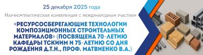 «Ресурсосберегающие технологии композиционных строительных материалов» (посвящена 70-летию кафедры ТСКИиМ и 75-летию со дня рождения д.т.н., проф. Матвиенко В. А.)